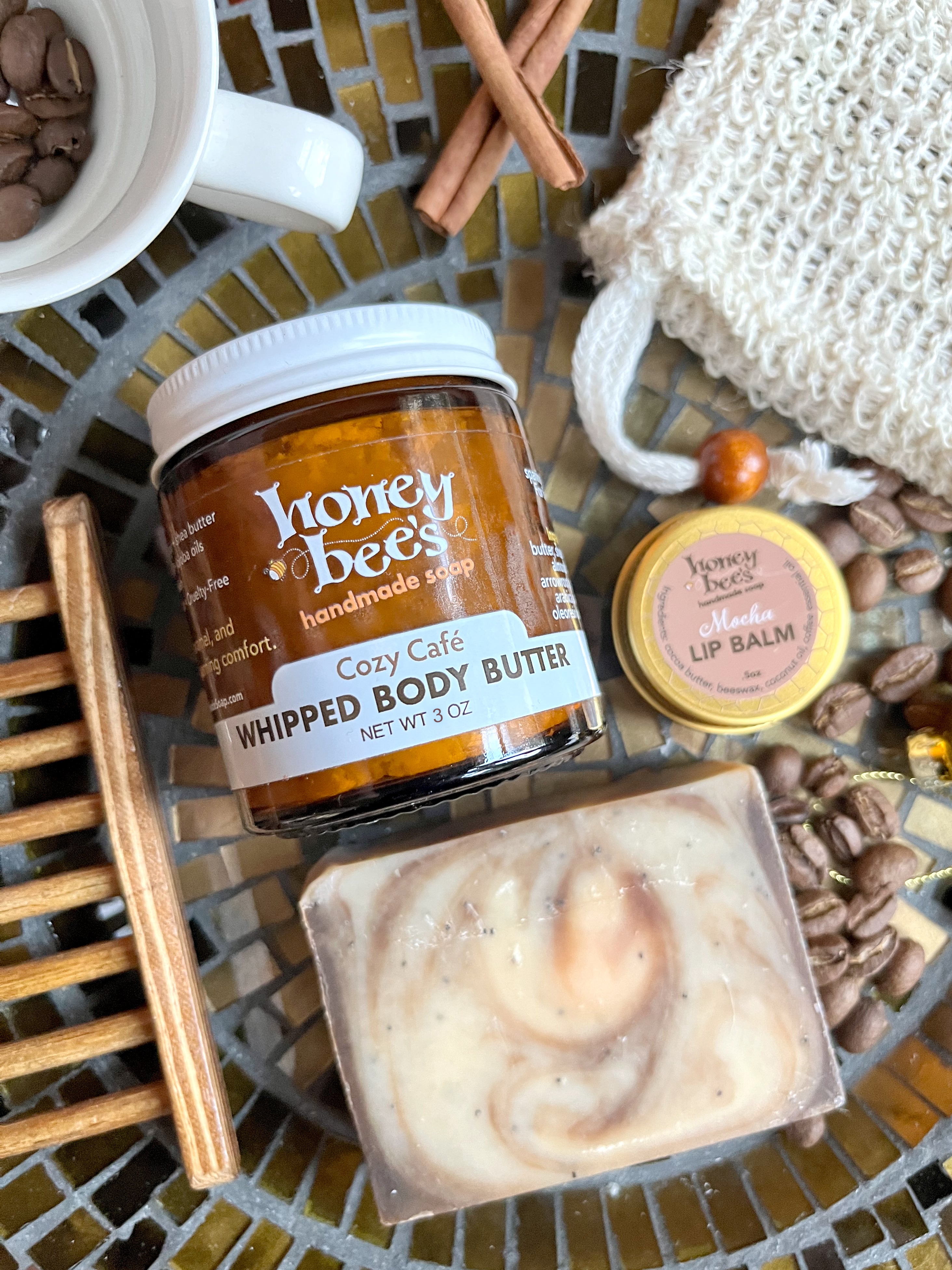 HoneyBee's handmade soap is crafted using the cold-process method, ensuring quality in every batch. Made from scratch with real ingredients and no preservatives, our base consists of olive oil, coconut oil, and beeswax, resulting in a durable, long-lasting bar. We prioritize minimal packaging and are dedicated to producing palm oil-free products.