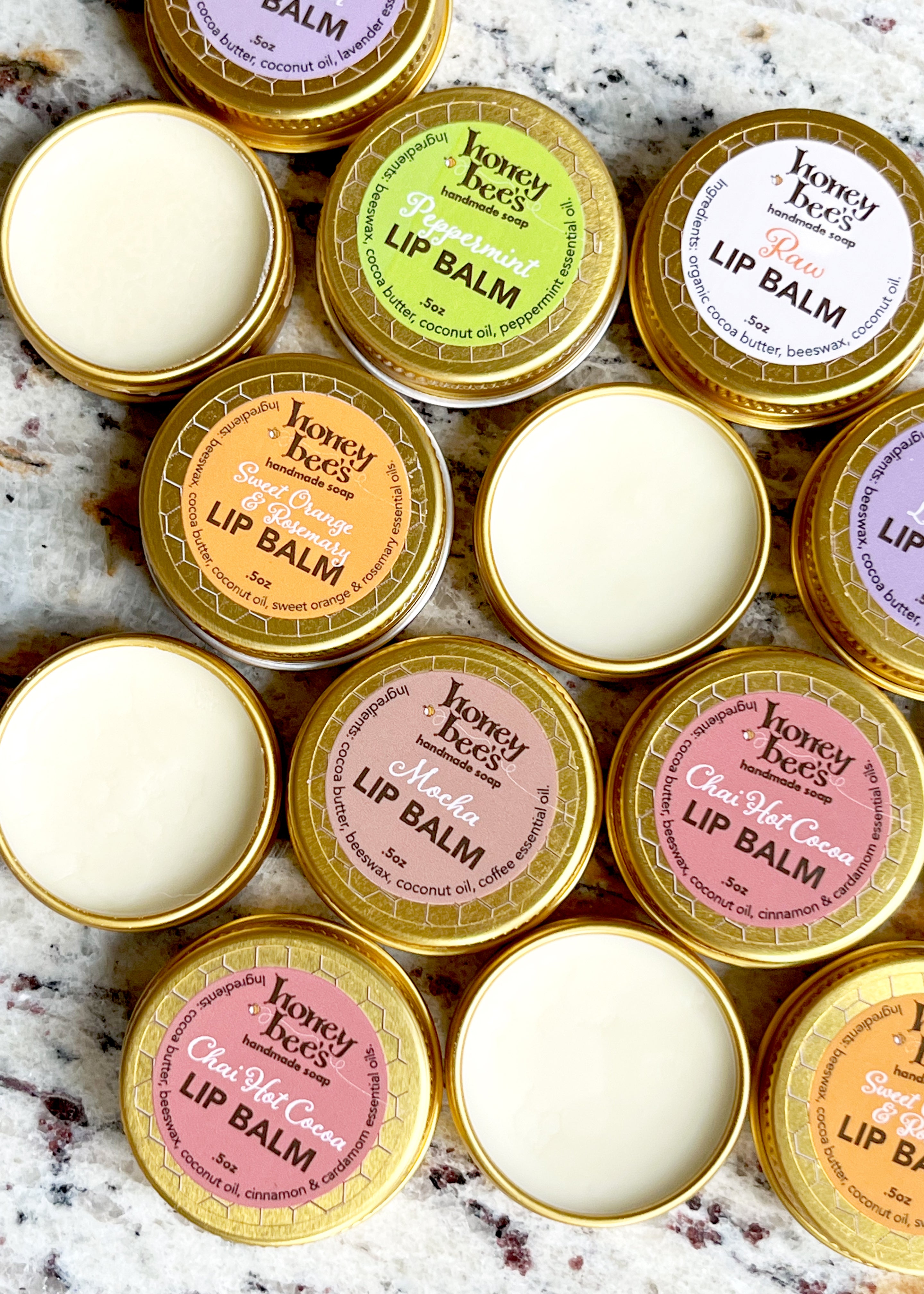 Lip BalmsMeet your new go-to for soft, nourished lips—our all-natural lip balm, made with organic cocoa butter, coconut oil, and beeswax. Lightly scented with pure essential oils, never anything artificial.